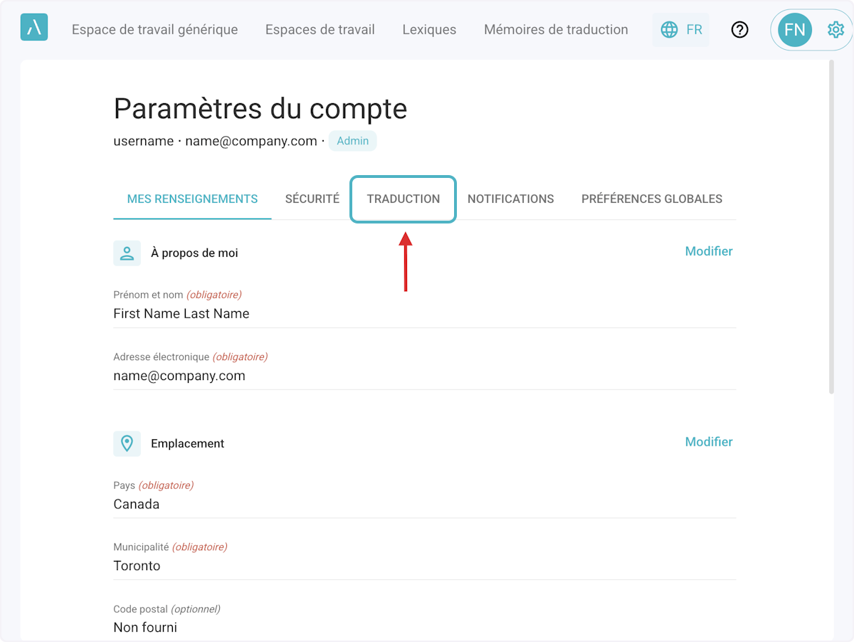 2. Ouvrez l’onglet Traduction pour modifier les préférences de traduction.