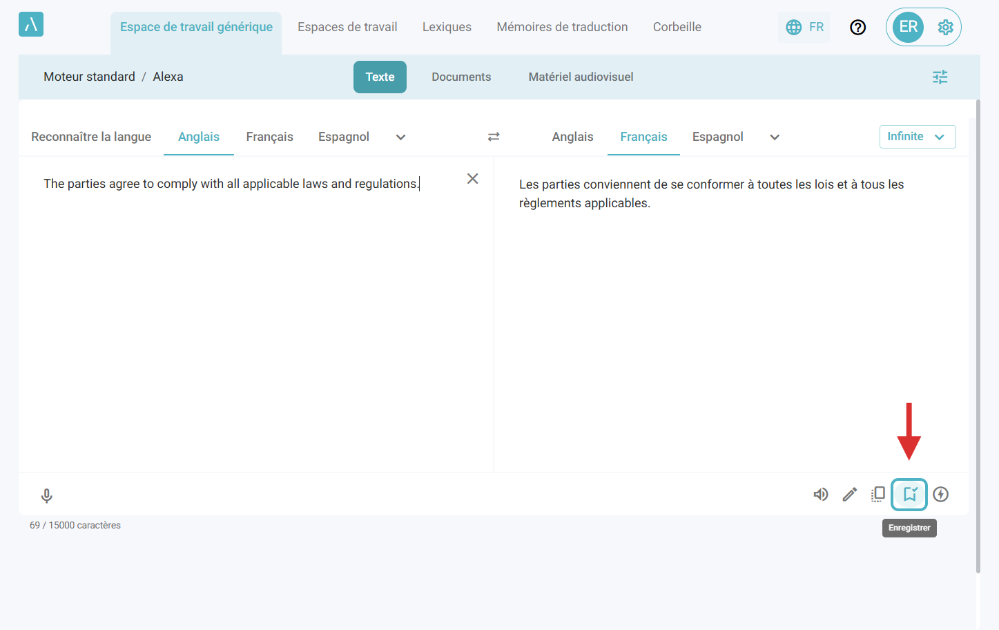 Vous pouvez suivre ces mêmes étapes dans n’importe quel espace de travail du logiciel Alexa Translations A.I.