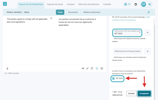 4. Cette section comprend deux options : la première permet d’enregistrer le contenu dans une mémoire de traduction et la seconde dans un lexique.
