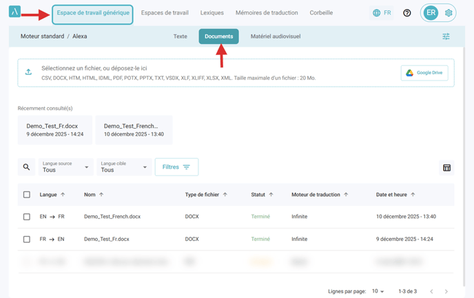 Vous pouvez suivre ces mêmes étapes dans n’importe quel espace de travail du logiciel Alexa Translations A.I.