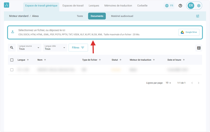2. Glissez-déposez le fichier dans le champ prévu à cet effet ou cliquez sur le champ pour sélectionner le fichier à partir de votre appareil.