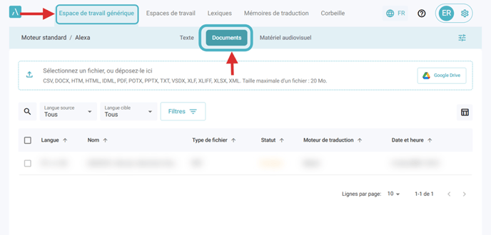 1. Choisissez l’espace de travail qui convient, puis cliquez sur Documents.