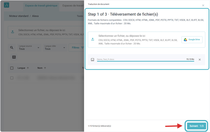 3. Après avoir téléversé votre document, cliquez sur le bouton Suivant.
