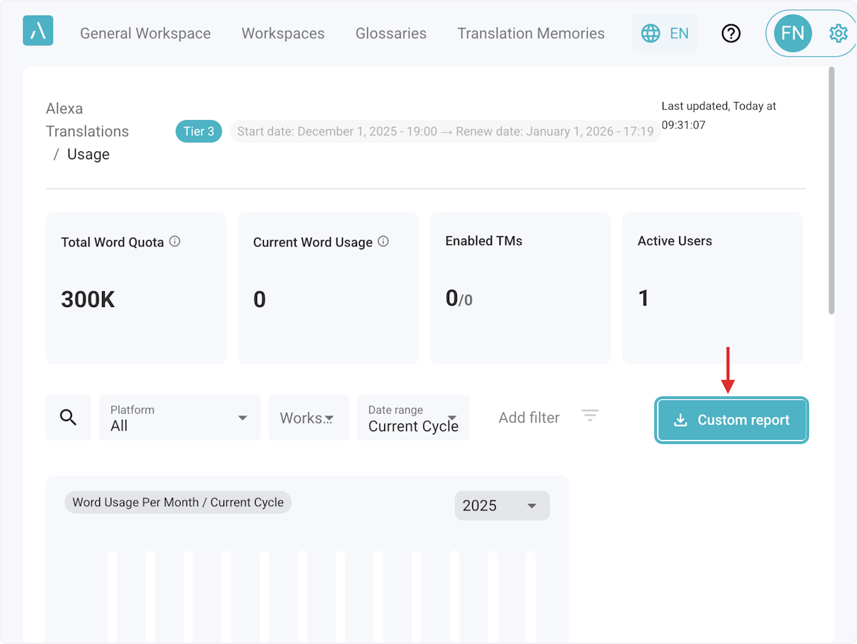 Select additional data dimensions as columns to include in your report and then click Generate Custom report. Mandatory columns are pre-selected and cannot be changed.