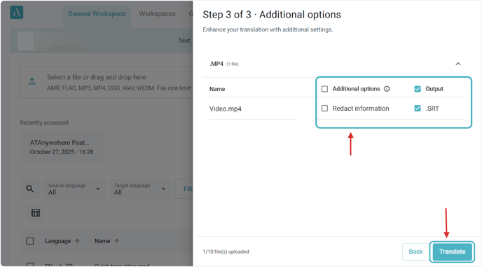 5. You can choose to redact personally identifiable information (PII) in the audio or video before clicking Translate