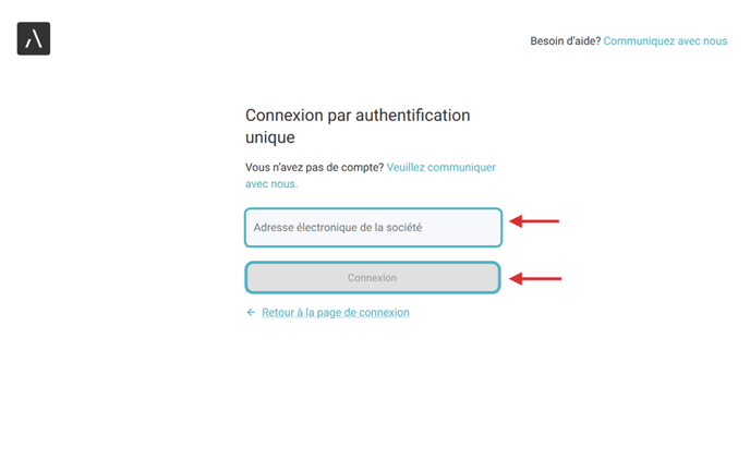 3. Saisissez l’adresse électronique de la société et cliquez sur Connexion.