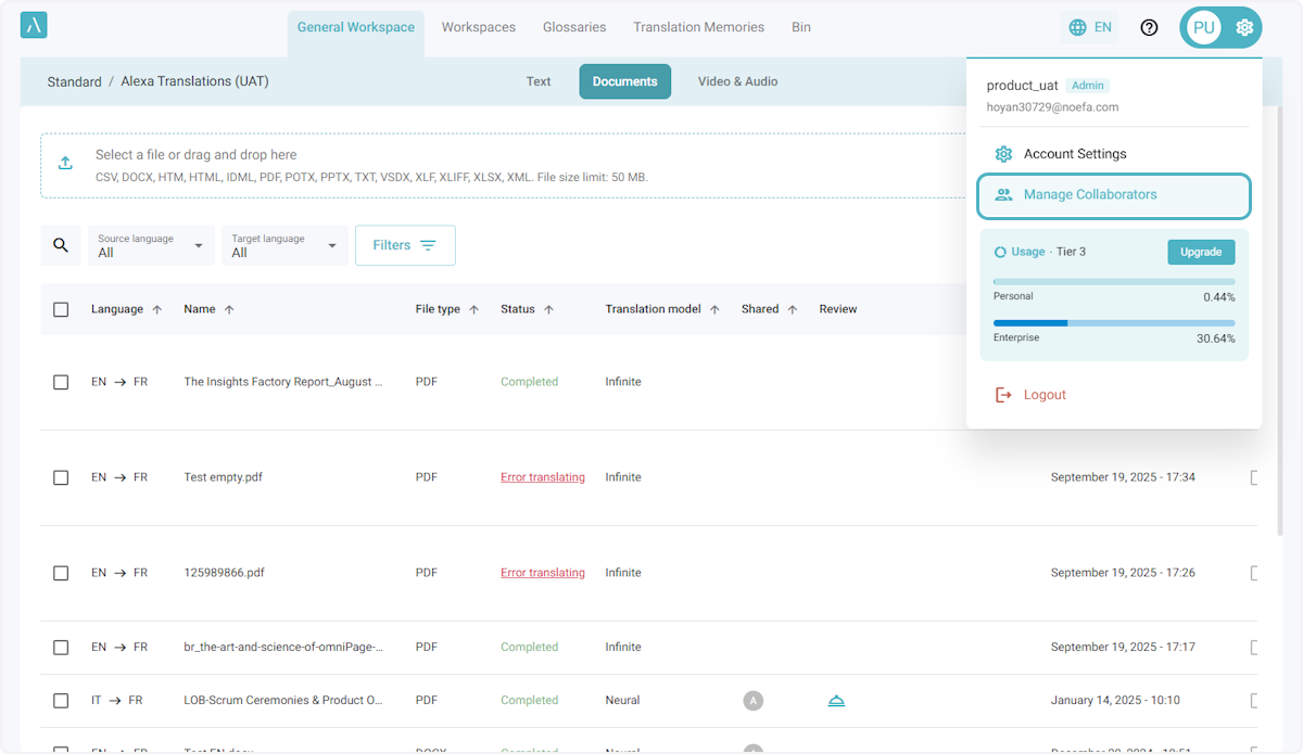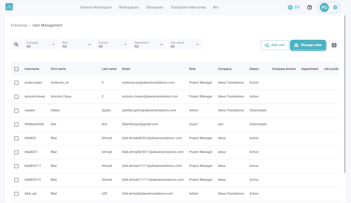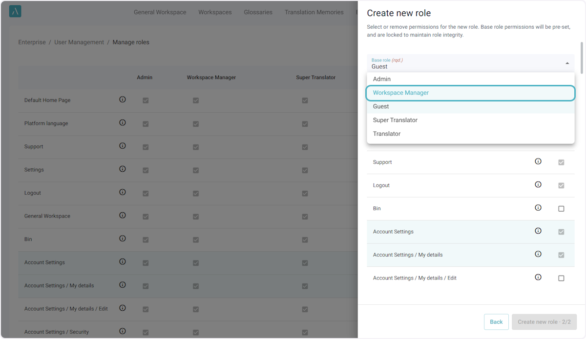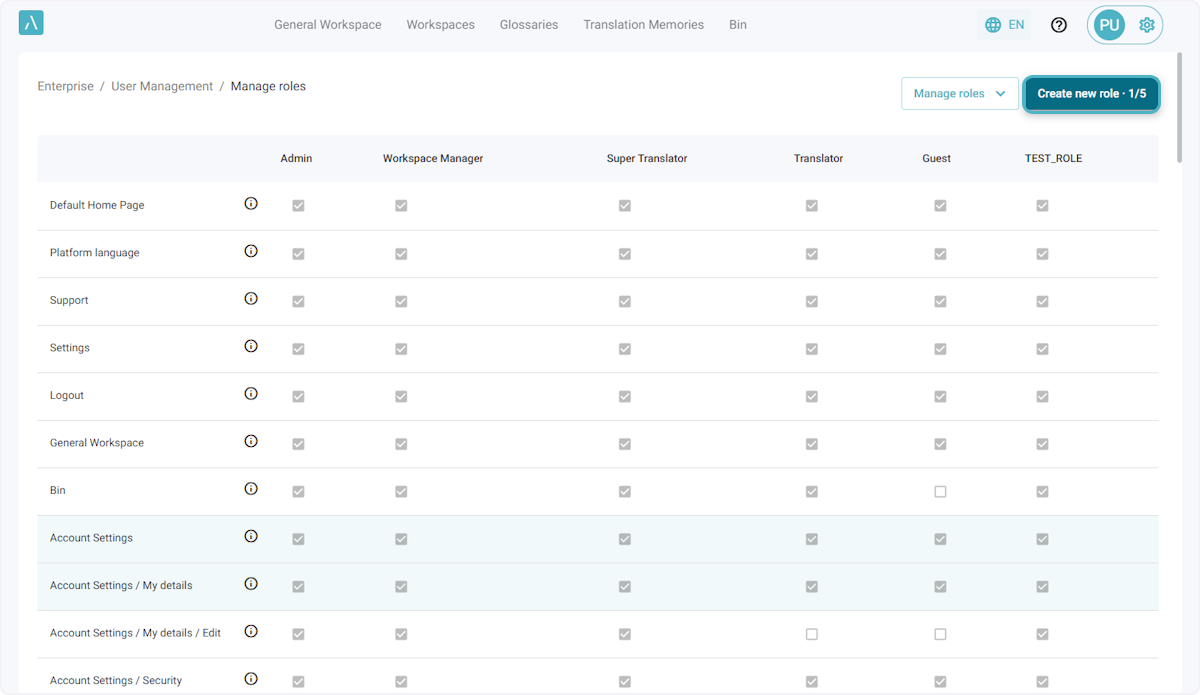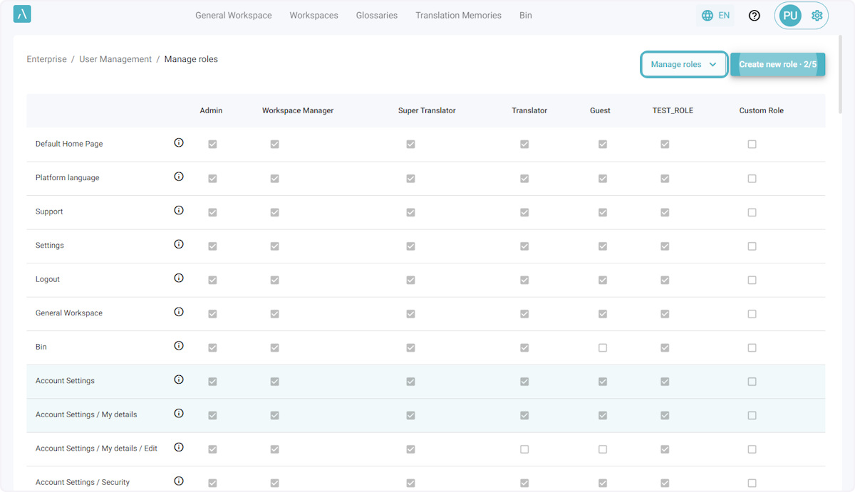 ℹ️ Le nombre maximal par défaut de rôles personnalisés pour une entreprise est de 5. Si vous avez besoin de rôles supplémentaires, veuillez envoyer un courriel à l’adresse ai_support@alexatranslations.com pour obtenir de l’aide.