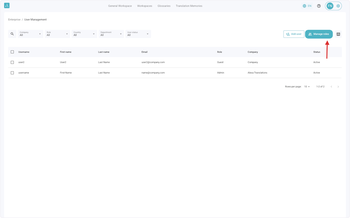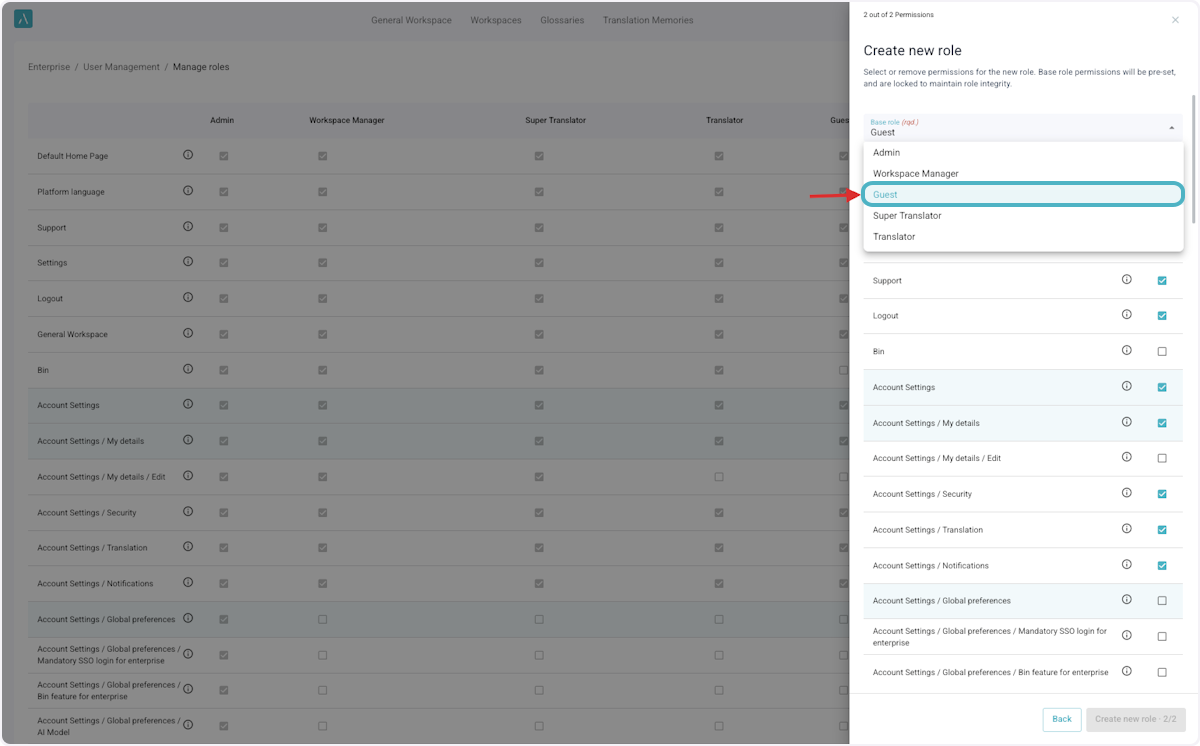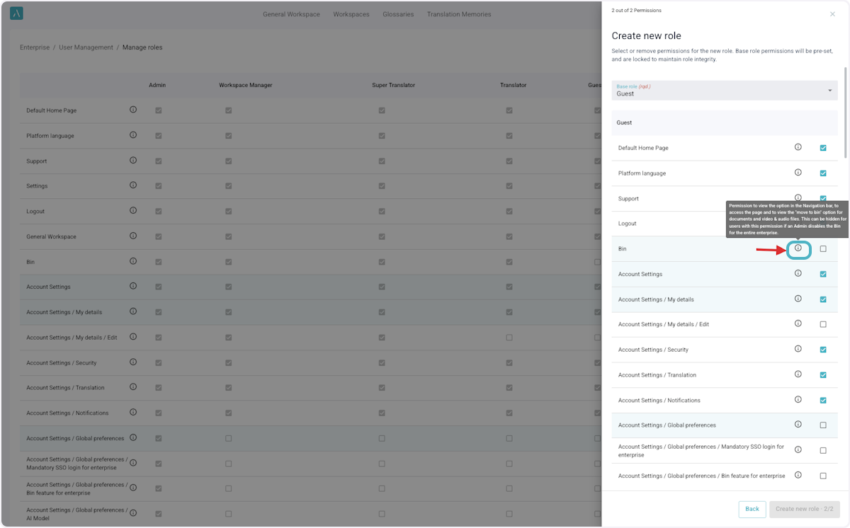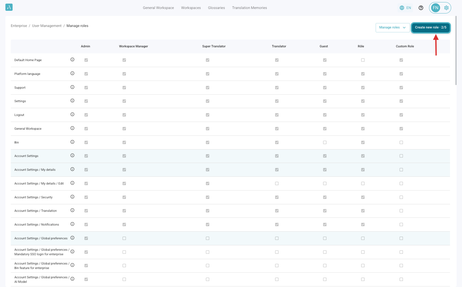 ℹ️ The default maximum number of Custom Roles for an enterprise is 5. If you need additional custom roles, please contact ai_support@alexatranslations.com for assistance.