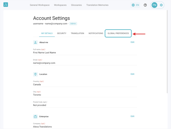 2. Click on Global Preferences.